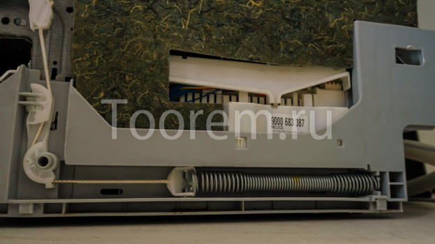 Принцип работы и устройство одинаково в посудомоечных машинах марок:Bosch Siemens, Neff, Kuppersbusch и См ФОТО Обрыв тросиков приводит к тому, что дверь открывается по другому. Её необходимо придерживать, что бы избежать ее падения и ремонта петель крепления.